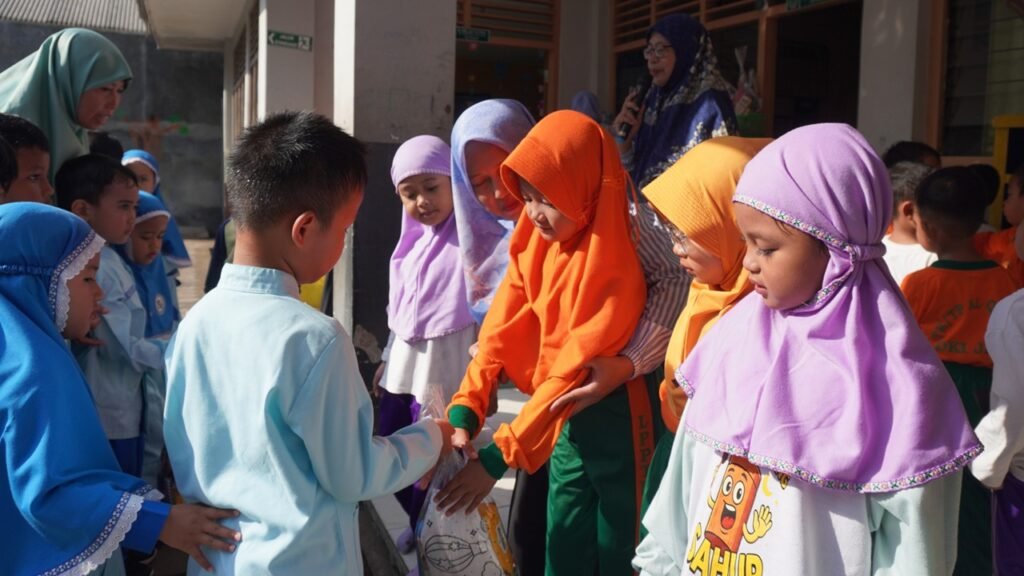 Kepala KBTK Islam Nur Hikmah Bekasi menyampaikan bahwa kegiatan ini merupakan bagian dari pembelajaran karakter sejak usia dini. “Kami ingin menanamkan kepada anak-anak bahwa berbagi adalah bentuk syukur atas nikmat Allah. Ini bukan sekadar memberi snack, tetapi membangun empati, kepedulian, dan rasa persaudaraan sesama muslim sejak kecil,” tuturnya dengan penuh harap.