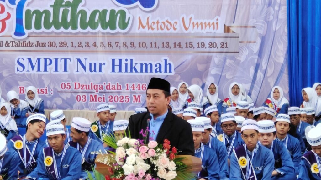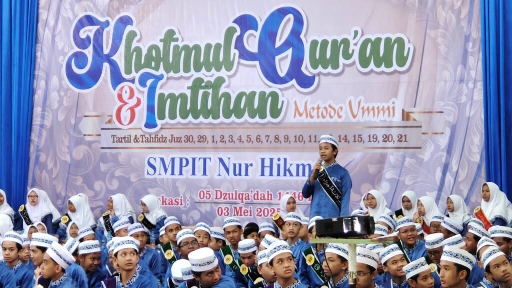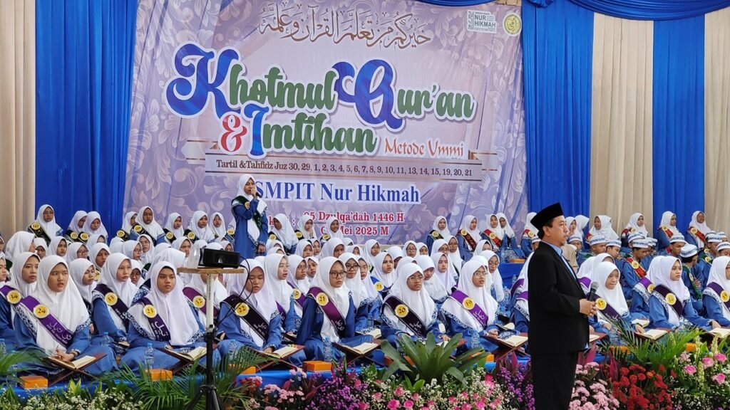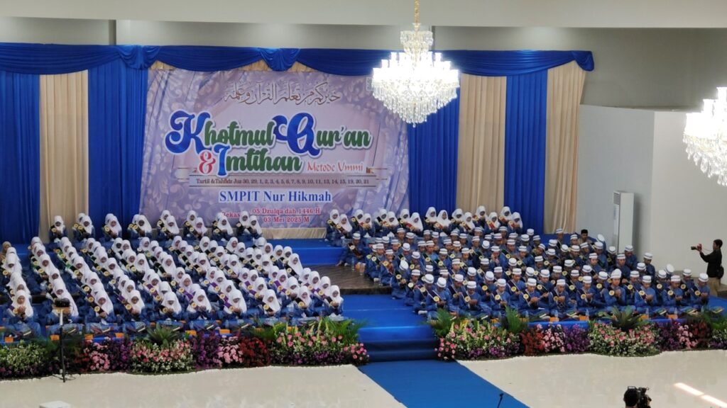 SMPIT Nur Hikmah,  Bekasi,  mengadakan Khotmul Quran dan Imtihan VI tahun 2025, Sabtu (3/5/2025). Kegiatan tersebut dilakukan secara kolosal dan dihadiri oleh seluruh peserta khotmul Quran, orang tua, serta tamu undangan dari berbagai kalangan, mulai dari Dinas Pendidikan Kota Bekasi, pimpinan pondok pesantren, hingga kepala sekolah sekitar Sekolah Nur Hikmah