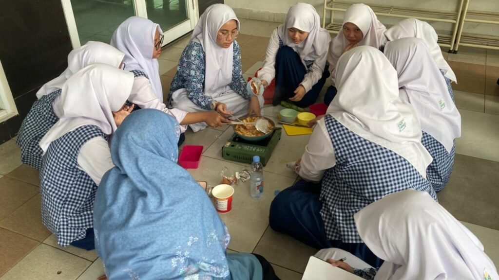 Dalam pelaksanaannya, siswa dibagi menjadi dua kelompok utama. Kelompok ikhwan mengikuti praktik memasak roti bakar dan sandwich, mulai dari menyiapkan bahan, mengatur rasa, hingga penyajian. Proses ini membuat para siswa belajar bekerja sama, mengatur waktu, serta berlatih kerapian dan kemandirian. Sementara itu, kelompok akhwat mengembangkan keterampilan memasak seblak, salah satu hidangan favorit remaja. Mereka berlatih meracik bumbu, mengatur tingkat kepedasan, hingga menyajikan hasil masakan dengan tampilan menarik. Suasana penuh canda dan semangat terlihat sepanjang kegiatan berlangsung.