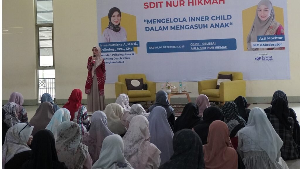 Kegiatan Parenting SDIT Nur Hikmah Bekasi yang diselenggarakan oleh Komite Sekolah pada 6 Desember 2025 berlangsung dengan penuh kehangatan dan antusiasme. Bertempat di lingkungan SDIT Nur Hikmah, acara ini dihadiri oleh sekitar 200 orang tua siswa yang dengan semangat mengikuti rangkaian kegiatan bertema “Mengelola Inner Child dalam Mengasuh Anak”. Kegiatan ini menjadi ruang refleksi bersama bagi para orang tua dalam memperbaiki pola asuh yang lebih sadar dan penuh empati.