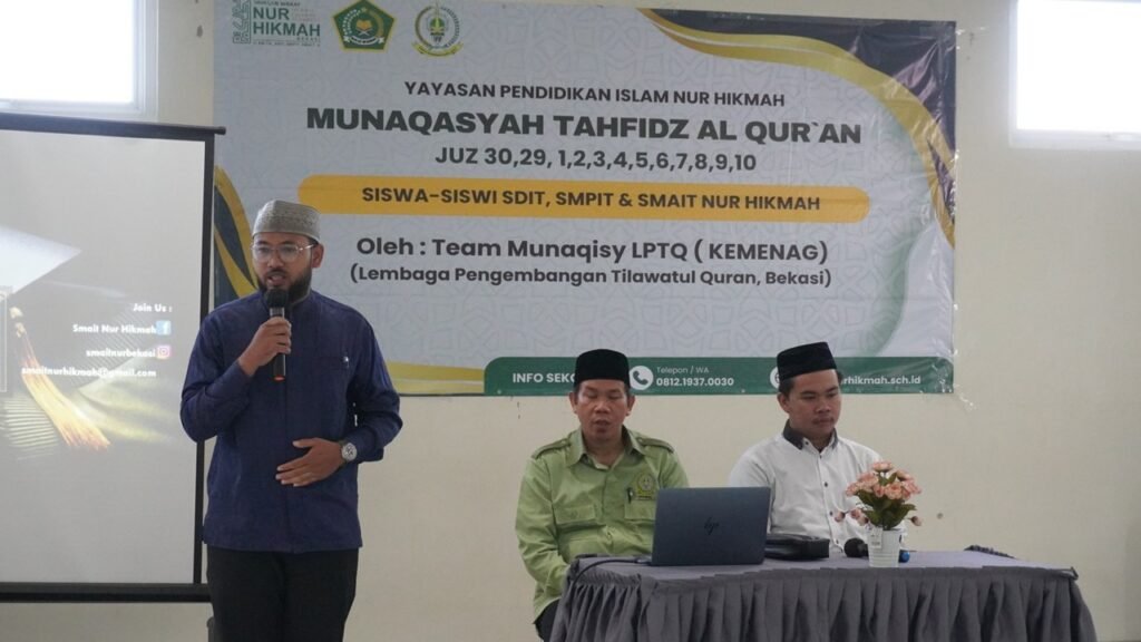 Kegiatan pengujian kemampuan Tilawatil Qur’an bagi pelajar SMAIT Nur Hikmah Bekasi telah sukses dilaksanakan pada 5 Desember 2025 di lingkungan Yayasan Wakaf Nur Hikmah. Kegiatan ini menghadirkan langsung tim penguji dari LPTQ (Lembaga Pengembangan Tilawatil Qur’an) Kota Bekasi, yang bertujuan menguji kemampuan baca Al-Qur’an para siswa sebagai syarat memperoleh sertifikat resmi untuk melanjutkan ke perguruan tinggi maupun kebutuhan administratif lainnya.