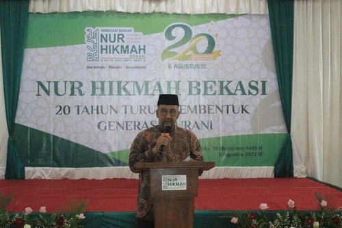 Peserta Hafiz Indonesia RCTI 2022 yakni Ananda M. Muadz Muwafiq yang juga salah satu siswa SDIT Nur Hikmah turut membuka rangkaian kegiatan Milad ini dengan pembacaan Al Qur’an surat Ali Imron ayat 133 – 140. Kemudian acara dilanjutkan dengan pengarahan dari Pembina Yayasan Wakaf Nur Hikmah Bekasi Ir. H. Abdul Kadir Baradja, dan dilanjut dengan pemberian achievement atau penghargaan kepada sejumlah tokoh yang turut membersamai lahirnya Nur Hikmah. Ke lima tokoh penting tersebut adalah Ir. Budiyanto, M. Eng selaku Manager pertama Nur Hikmah, Ir. H. Abdul Baradja selaku Pembina Yayasan sejak awal Nur Hikmah berdiri hingga saat ini, Ibu Rachimah sebagai Ketua Komite Angkatan ke  dua, H. Syahroji Mada’ali selaku tokoh Masyarakat yang turut menjadi saksi akan sketsa dakwa pendiri Nur Hikmah. Sedangkan life time achievement diberikan kepada Almarhum Bunda Aliah Munabari sebagai founding father yang turut membidani lahirnya Nur Hikmah. Namun, penerimaan apresiasi ini diwakili oleh pihak keluarga yang turut hadir dalam tasyakur milad ke-20 kali ini.