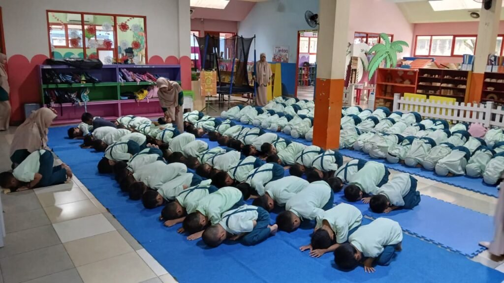 Pada pelaksanaan terbaru, suasana aula tampak khidmat dan tertib. Anak-anak duduk rapi membentuk shaf kecil mereka, dengan penuh antusias mengikuti rangkaian salat berjamaah. Izan, siswa dari kelas TK B1, mendapat amanah sebagai imam, memimpin teman-temannya dengan suara lantang dan percaya diri. Sementara itu, Algafi dari kelas TK A1 bertugas mengumandangkan adzan dan iqamah, menambah suasana religius yang mengharukan bagi para guru yang mendampingi.