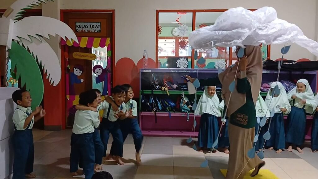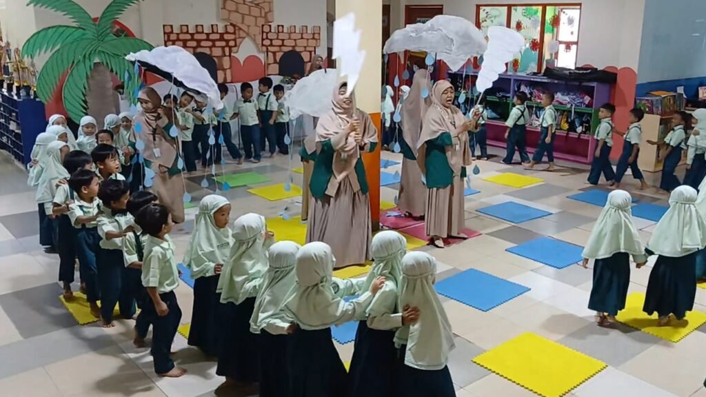 Kepala KBTK Islam Nur Hikmah, Ustadzah Luckyana, S.Pd., menyampaikan bahwa pembelajaran tematik seperti ini bertujuan agar anak-anak belajar dari hal-hal yang mereka alami langsung. “Musim hujan adalah momen yang tepat untuk mengenalkan cuaca kepada anak. Dengan pendekatan bermain dan bercerita, anak-anak lebih mudah memahami, sekaligus belajar mensyukuri nikmat hujan sebagai karunia dari Allah,” tuturnya.