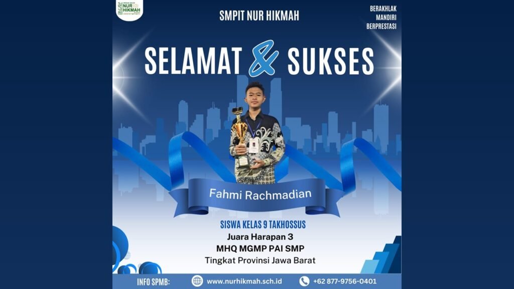Prestasi Fahmi di Cianjur menjadi inspirasi bahwa anak muda yang berpegang teguh pada Al-Qur’an mampu bersaing di level provinsi. Dengan usaha, doa, dan bimbingan yang tepat, generasi Qur’ani seperti Fahmi diyakini akan menjadi penopang peradaban Islam di masa depan. SMPIT Nur Hikmah Bekasi bangga dan berharap kemenangan ini menjadi awal dari banyak prestasi yang lebih besar