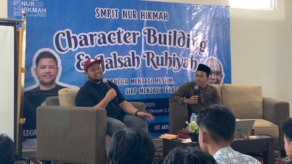 Pada hari Kamis, 8 Mei 2025, SMPIT Nur Hikmah menyelenggarakan Seminar Character Building bertajuk “Menjadi Pelajar Tangguh di Era Gen Z”, menghadirkan narasumber inspiratif Edgar Hamas—penulis muda, aktivis kemanusiaan, dan admin akun edukatif @GenSa yang dikenal luas di kalangan remaja. Kegiatan ini menjadi bagian dari program pembinaan karakter siswa, khususnya dalam membangun kesadaran jati diri dan kepedulian global sejak usia sekolah.