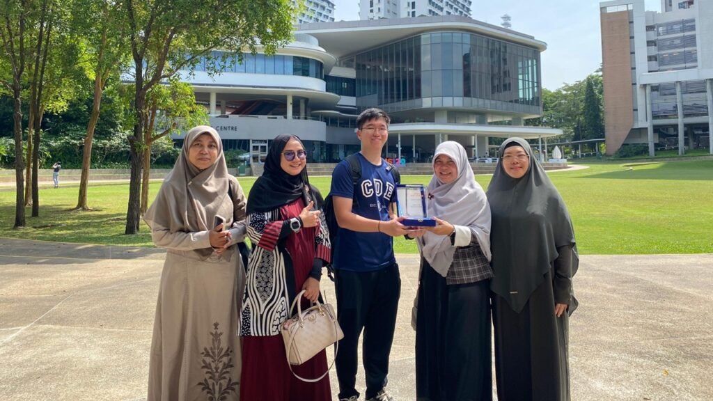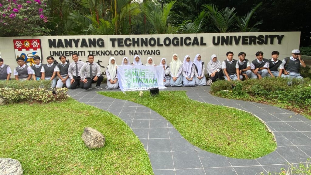 Berikutnya, rombongan melanjutkan kunjungan ke Nanyang Technological University (NTU). Di kampus bergengsi ini, siswa diperkenalkan dengan berbagai inovasi teknologi, pusat penelitian, dan atmosfer pembelajaran modern. Tidak hanya itu, siswa juga berkesempatan berinteraksi dengan mahasiswa Indonesia yang tengah menempuh studi di NTU. Sebagai simbol persahabatan dan harapan kolaborasi, SMAIT Nur Hikmah kembali menyerahkan plakat kepada pihak universitas.