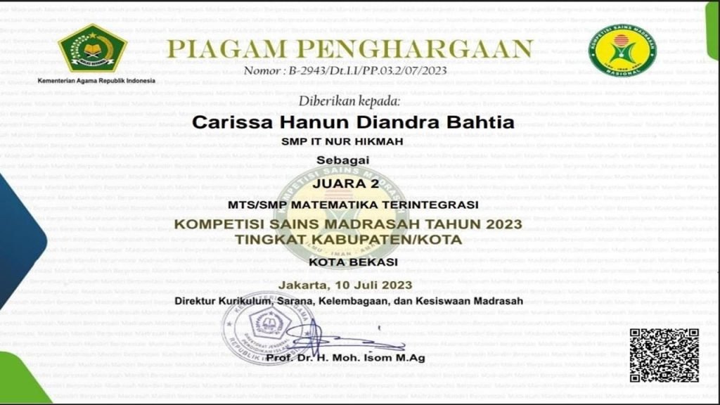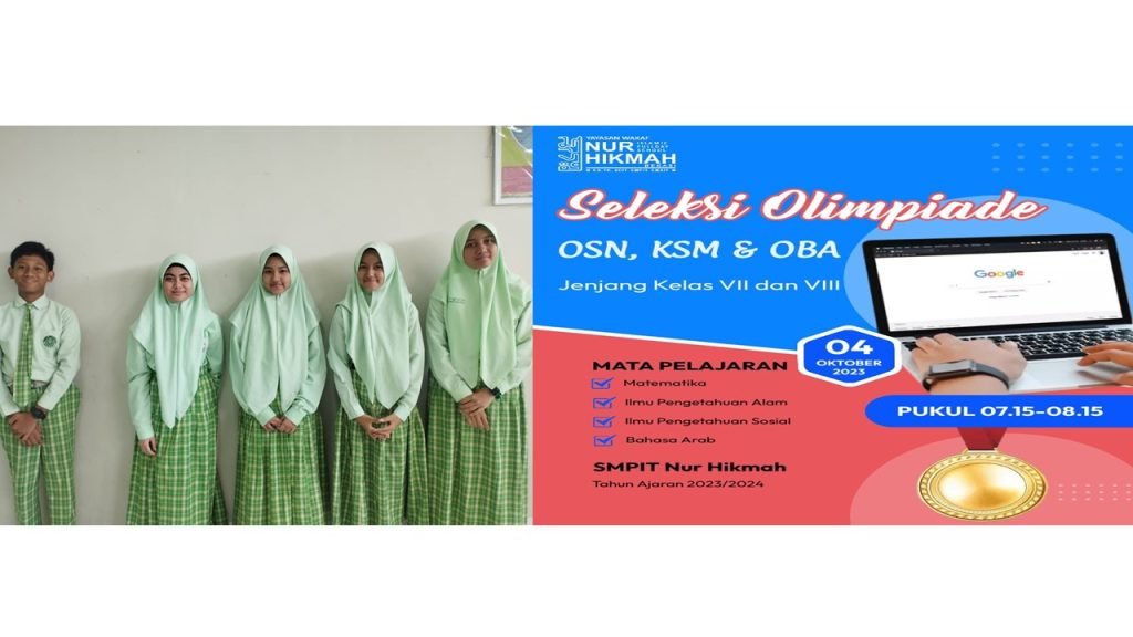 Tahapan seleksi internal di satuan pendidikan SMP IT Nur Hikmah dalam program sukses olimpiade telah dilakukan jauh jauh dari dan bentuk nyata persiapan yang luar biasa dari Tim Sukses Olimpiade SMP IT Nur Hikmah Bekasi. Olimpiade bagian dari upaya kompetitif untuk anak-anak kita dalam pengetahuan secara luas. Bersaaman dengan ini, kami juga memohon do’a kepada seluruh murid dan orang tua agar ikhtiar ini dapat menjadi hal yang baik untuk mencapai salah satu visi misi SMP IT Nur Hikmah yakni berprestasi akademik optimal. Alhamdulillah seleksi tersebut terselenggara dengan baik & mendapatkan hasil seleksi terbaik dari siswa/siswi hebat.
