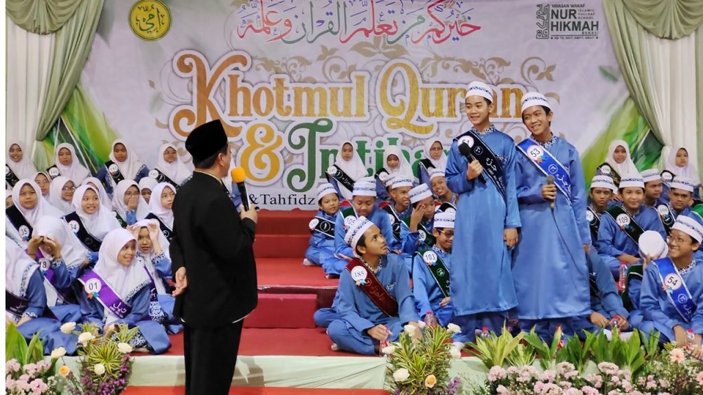SMPIT Nur Hikmah,  Bekasi,  mengadakan Khotmul Quran dan Imtihan ke- IV tahun 2022, Sabtu (13/5). Kegiatan ini dilakukan secara kolosal di hadiri oleh seluruh peserta khotmul Quran, orangtua serta tamu undangan dari berbagai kalangan, mulai dari dinas pendidikan kota Bekasi, Pimpinan Pondok pesantren, kepala sekolah sekitar Sekolah Nur Hikmah