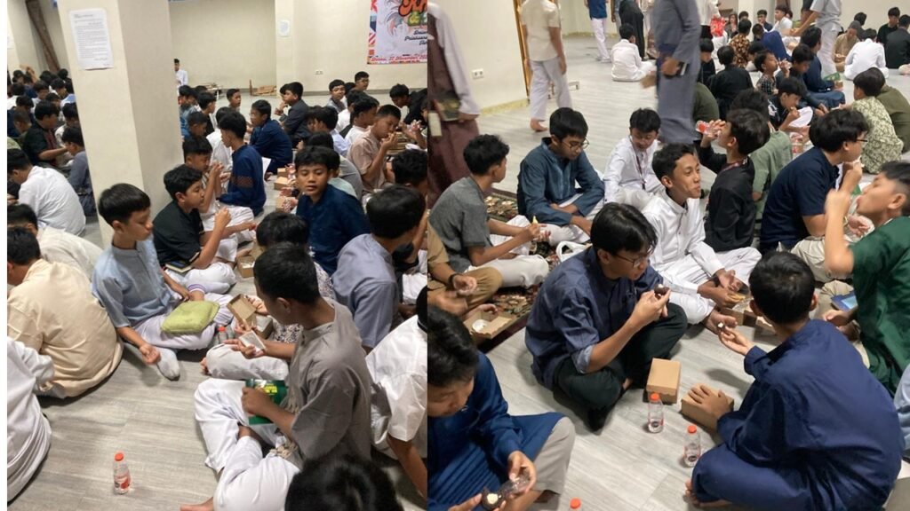 Menjelang waktu Magrib, suasana semakin hangat ketika seluruh siswa, guru, dan civitas sekolah berkumpul untuk berbuka puasa bersama. Hidangan sederhana yang disiapkan panitia menjadi terasa lebih bermakna karena dinikmati dalam suasana kebersamaan. Salah satu siswa menyampaikan bahwa momen ini membuatnya merasa lebih dekat dengan teman-teman dan guru, serta menambah semangat untuk menjaga amalan shaum sunnah.