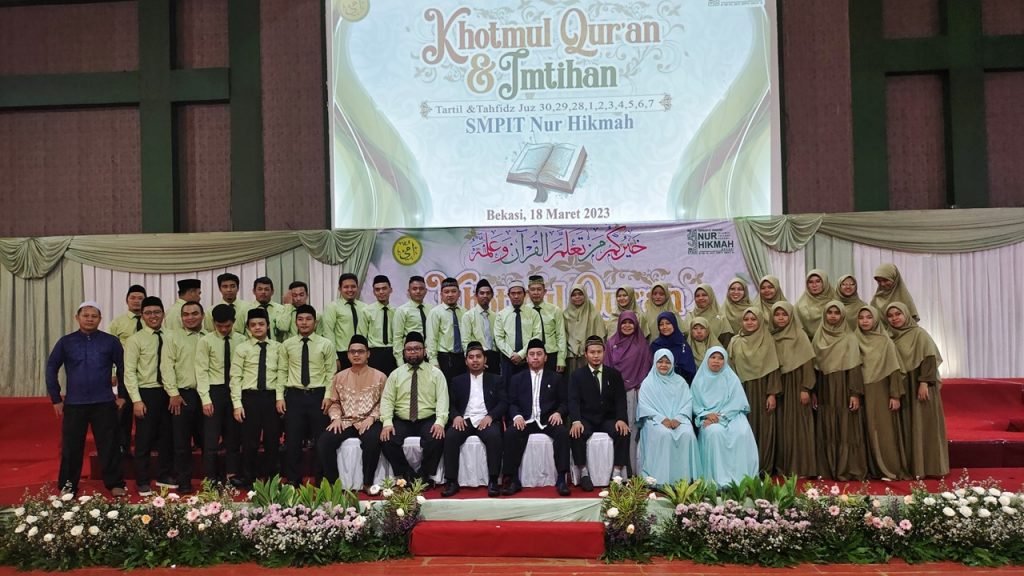 Sabtu 18 Maret 2023, SMPIT Nur Hikmah mengadakan Khotmul Qur’an dan Imtihan ke- IV ditahun 2023. Kegiatan ini dilakukan di gedung Bela Vista bilangan Pondok gede, dengan jumlah peserta 188 siswa yang dihadiri tetamu undangan dari berbagai kalangan.