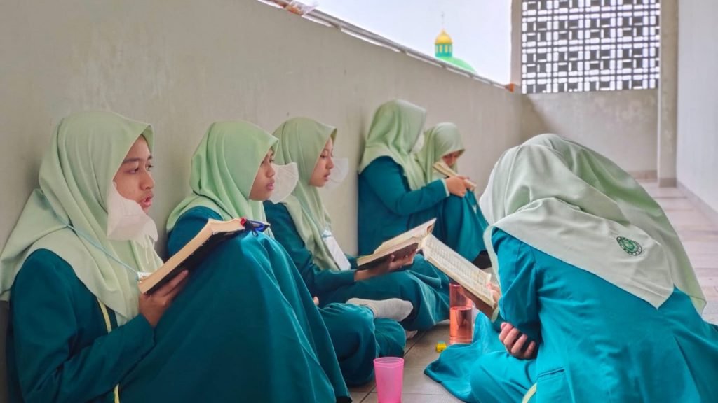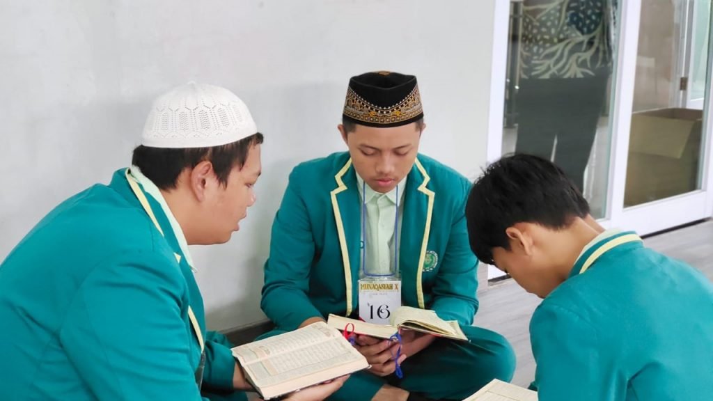 siswa ikhwan sedang menguji hafalan dengan teman sejawat